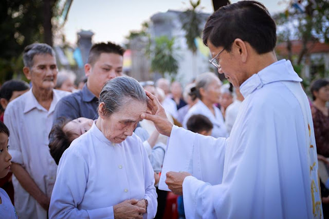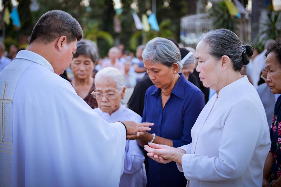 Trong thánh lễ, cha sờ Simon Nguyễn Văn Thu, cha phó Giuse xức dầu bệnh nhân, có những người ngồi trên xe lăn, có những ông bà gầy còm run rẫy và đặc biệt là có rất đông người với nét mặt ưu tư - những ai cảm thấy mình đau bệnh xin Mẹ chữa lành thể xác và tâm hồn. Hình ảnh giáo dân Búng trước hang núi Đức Mẹ chiều nay rất đẹp, một sự khiêm hạ tự nhận thấy mình cần được chữa lành, một sự nâng đỡ nhau không phải một mình lẻ loi trước bệnh tật. Nhất là trong những ngày xuân thêm tuổi, sự mệt nhọc đau yếu không tính được thời gian còn lại của mình là bao lâu, có lê thê mòn mỏi khi tuổi già sức yếu- mắt nhìn không rõ, chân bước không vững- có thể té ngã và ra đi bất cứ lúc nào?