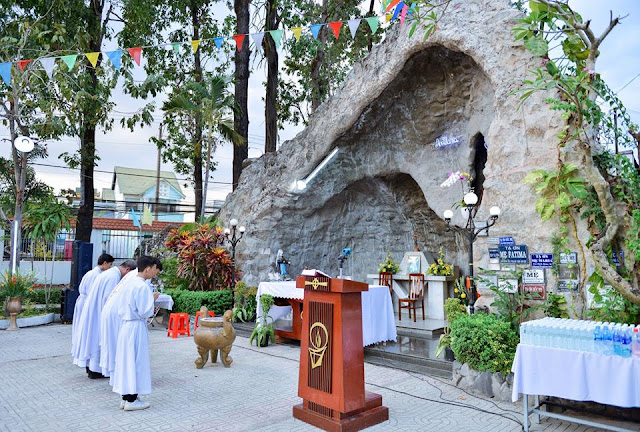 Mừng kỷ niệm Đức Mẹ hiện ra tại Lộ Đức với chị thánh Bernadette ngày 11-2-1858 năm xưa và ngày hôm nay ngày Quốc tế Bệnh nhân, vào lúc 17g30 ngày 11-2-2019 tại Giáo xứ Búng, thánh lễ đồng tế do Cha sở Simon chủ sự được cử hành nơi núi Đức Mẹ dưới sự tham gia đông đảo của bà con giáo dân Búng.