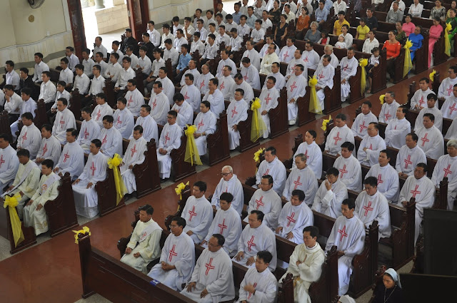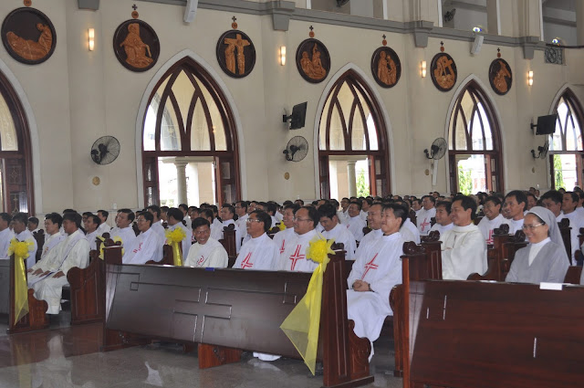 Thánh lễ ngày hôm nay cho chúng con nhìn lại một chặng đường gian khó mà các Ngài trải qua, đã Yêu rồi làm, một sự kết nối kỳ diệu từ Đức cha Giuse Phạm Văn Thiên, Đức cha Luy Hà Kim Danh, Đức cha Phêrô Trần Đình Tứ, Đức cha Giuse Nguyễn Tấn Tước- Giám mục đương nhiệm GP chúng con- qua bao bước thăng trầm lịch sử mà ngày hôm nay 29-4-2019, đã 44 năm giải phóng miền Nam, chấm dứt chiến tranh, Giáo Hội Công giáo địa phương từng bước tiến lên cùng với lòng mến đã nhân rộng Nước Chúa, Những ngôi thánh đường mới được cung hiến, ngày Chúa nhật có biết bao thánh lễ! Bà con giáo dân dự lễ đông đảo và sốt sắng.