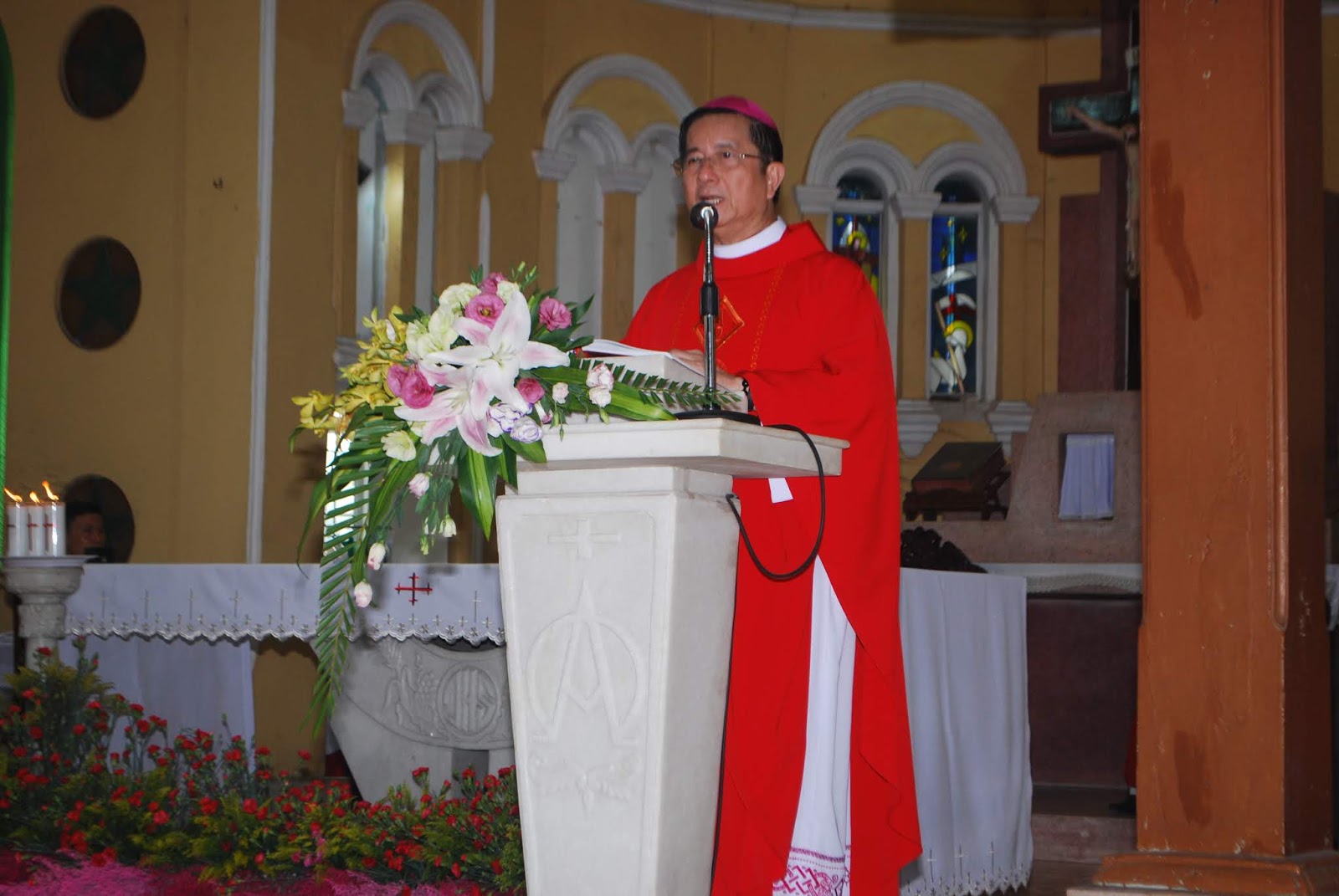 Đức cha nói ý nghĩa của thánh lễ hôm nay, chúng ta cùng hiệp ý xin Bảy ơn Thánh Thần xuống trên các em, để các em được Thêm Sức, biến đổi nên những con người xứng đáng là con cái Chúa.
