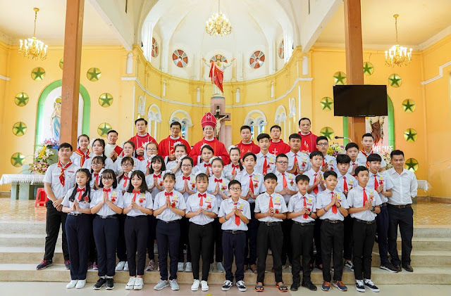 Kết lễ, các em chụp hình lưu niệm với Đức cha và quý cha, ra về trong niềm vui lãnh nhận ơn Chúa Thánh Thần. Xin cho các em mãi xứng đáng, mãi hạnh phúc trong ơn Chúa.