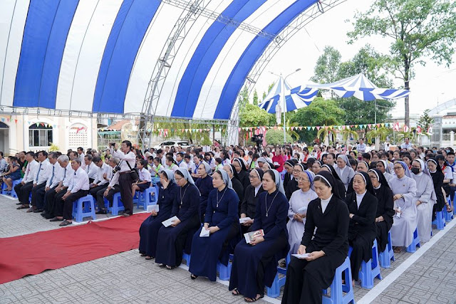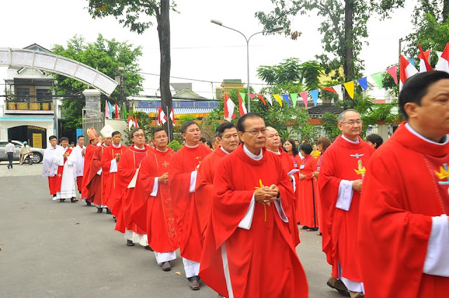 Khói hương trầm nghi ngút trước tượng đài thánh Qúi, ngắm nhìn di ảnh, cha thánh trẻ mãi theo thời gian, tên tuổi ngài lưu danh muôn thuở! Nổi bật giữa dòng người, màu phẩm phục đỏ của quý cha sống động tạo nên sự xúc cảm vô bờ cho người tham dự thánh lễ hôm nay.