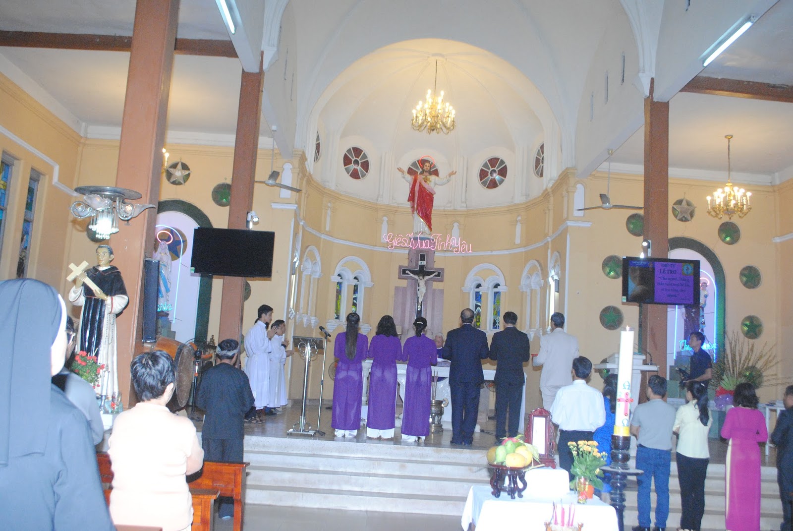 Thánh lễ kết thúc vào lúc 6g30 trong bầu không khí trang nghiêm. Các ban ngành đoàn thể đến chúc tuổi cha, thăm dì phước, và chúc nhau một năm mới bình an.